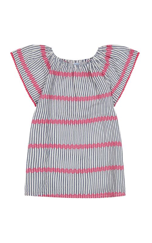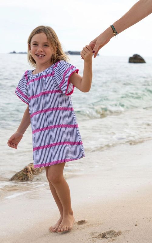 Get ready for some beach fun with the Mini Capucine Girl's Caftan! This boho chic cover up doubles as a playful beach dress, featuring whimsical embroidery, elasticized neck and roomy flutter sleeves. Perfect for a carefree and stylish look. 100% cotton gauze.