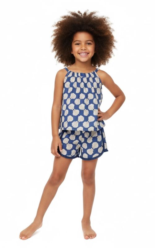 Colette Girls Top and Short Set Shell Beach Navy.