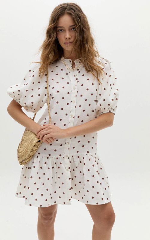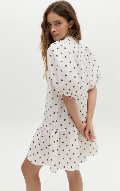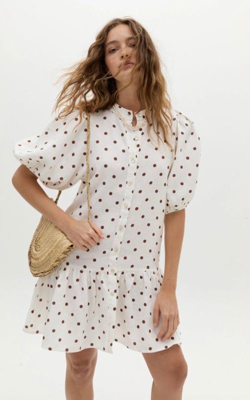 The Carmela Dress is your new go-to for feminine, breathable style. Crafted from 100% natural linen, this mini dress features a signature romantic silhouette with voluminous puff sleeves and a playful ruffled hem.