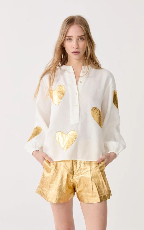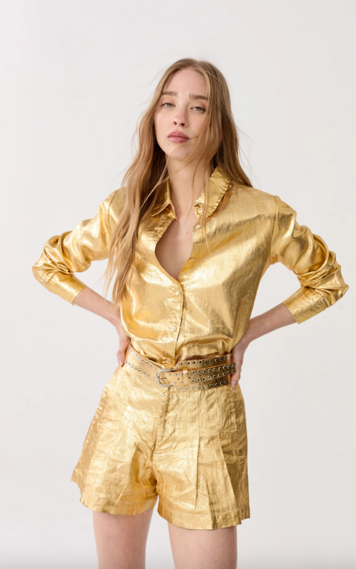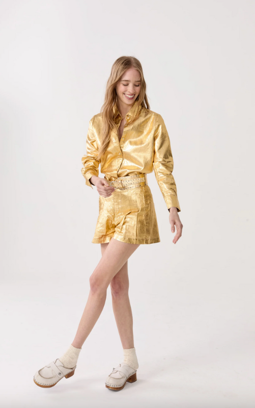 PLEASE NOTE: This garment has a metallic print with a fade-out wash that aims to give an aged appearance. Both the metallic print and the washed effect are very delicate processes that make this item a one-of-a-kind piece with very careful handling.