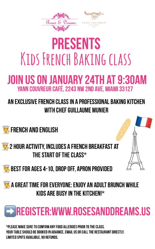 Join us on January 24th at 9:30AM for a kids French Baking Class with Chef Guillaume Munier in French and English.