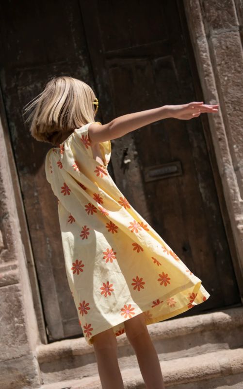 Perfect for your little flower child, this flutter-sleeve dress features a cheerful floral print with a nod to 1960s style. Made from a soft cotton blend and designed for lightweight comfort and easy summer days.