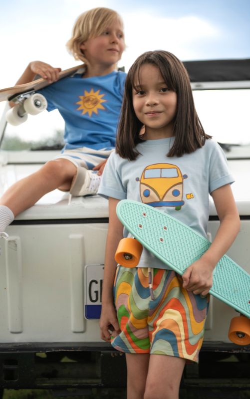 Meet the Groovy Van T-Shirt, an everyday essential for little explorers. Made from soft recycled and organic cotton, this unisex tee is designed for comfort, play, and endless adventures. Designed with a playful retro van graphic, it mixes and matches effortlessly with all of our groovy shorts and pants.