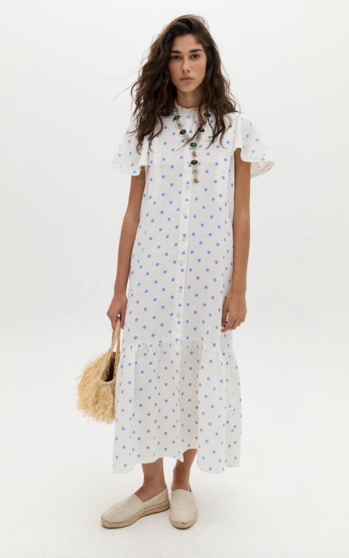 Our new Willow Dress is so fresh and feminine you'll want to wear it constantly. The flutter detail at the shoulders falls like a short sleeve, giving it an original and super elegant touch, while its mandarin collar and relaxed fit with gathering at the hem make it incredibly comfortable. It's crafted from our characteristic 100% natural linen, pre-washed and softened, which makes it lightweight and very soft to the touch.
